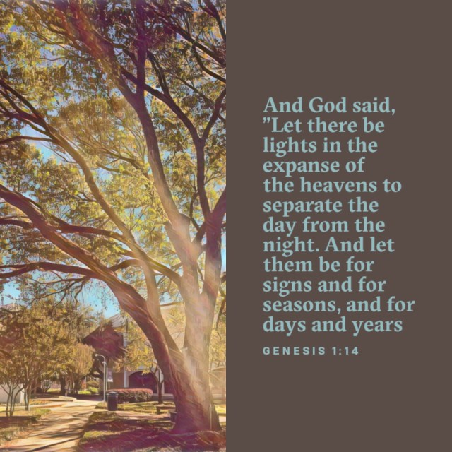 “And God said, ‘Let there be lights in the expanse of the heavens to separate the day from the night. And let them be for signs and for seasons, and for days and years.’” Genesis 1:14